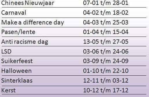 Feesten die we gaan vieren dit schooljaar: