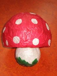 Paddenstoel de paddenstoel is gemaakt van een ballon met papier-maché eromheen. Daarna is de witte onderkant naar binnen geduwd waardoor de paddenstoel ontstond.